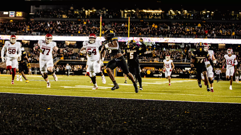 Zion Young scores the game-winning touchdown in Mizzou’s win over Oklahoma last season. (Photo: Terrance Williams)