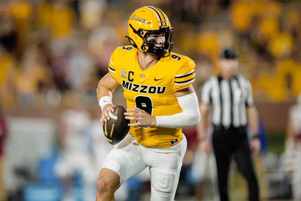 Quarterback Beau Pribula completed 26-of-29 passes for 271 yards and a touchdown in Mizzou’s 42-6 win over UMass on Saturday. (Photo: Ellie Parker)