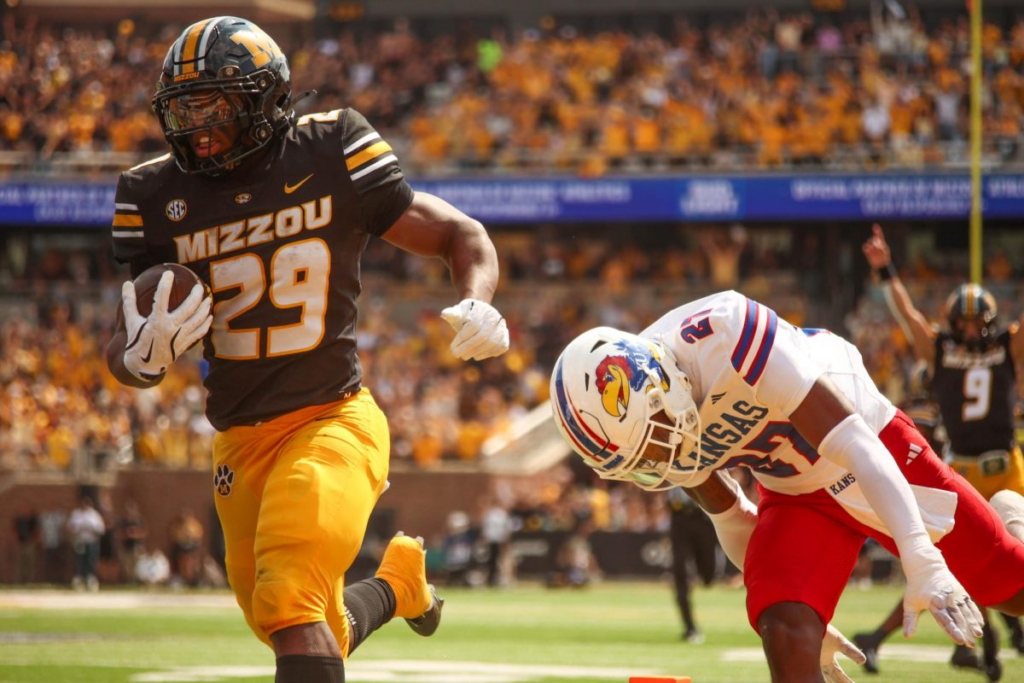RB Ahmad Hardy rushed for 112 yards and scored a touchdown in Mizzou’s ‘Border War’ win over archrival Kansas, last Saturday. (Photo: Terrance Williams)
