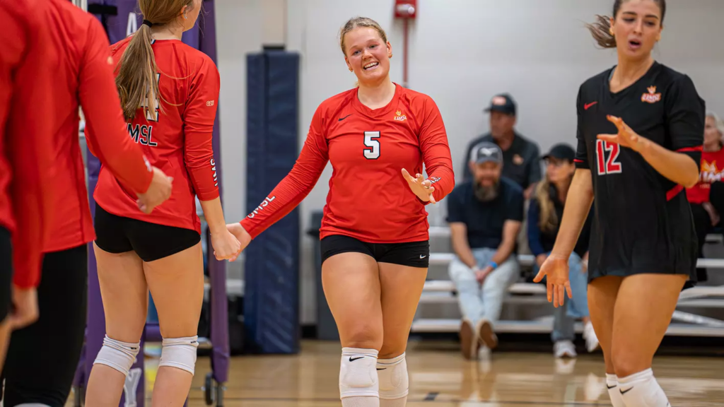 UMSL never trailed in the opening set as it started the match on a 10-3 run and led by as many as seven points in the frame. Rockhurst got to within three halfway through but couldn’t overcome the Triton attack as UMSL hit .357 in the stanza with 21 kills and were led by Alayna Santel and Maggie Johnson with seven kills apiece.